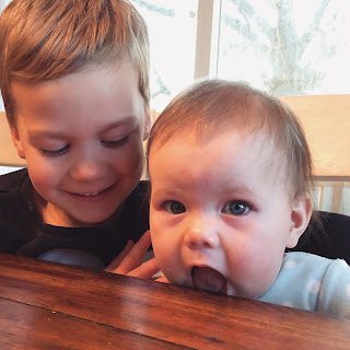 Physically: Anna is soooo giggly this month and we are having such fun making her laugh. She doesn't get much peace during the day! Her eyes are beginning to get a hazel ring around the middle, so this may be the last month of our blue eyed baby. Time will tell! She is rolling, spinning, scooting, sliding and using all available means of slowly maneuvering around a space. She currently loves to have something in her hands, but what she's holding doesn't go instantly to her mouth. Her fingers, on the other hand, are often in her mouth. We have named her preferred sucked position "hook 'em horns." She is holding steady at 2 bottom teeth with nothing else currently peeking through. (But for the record, both Lydia and Sarah have molars breaking through!) Sitting up is going well, but I'm not confident enough to leave her unsupported.